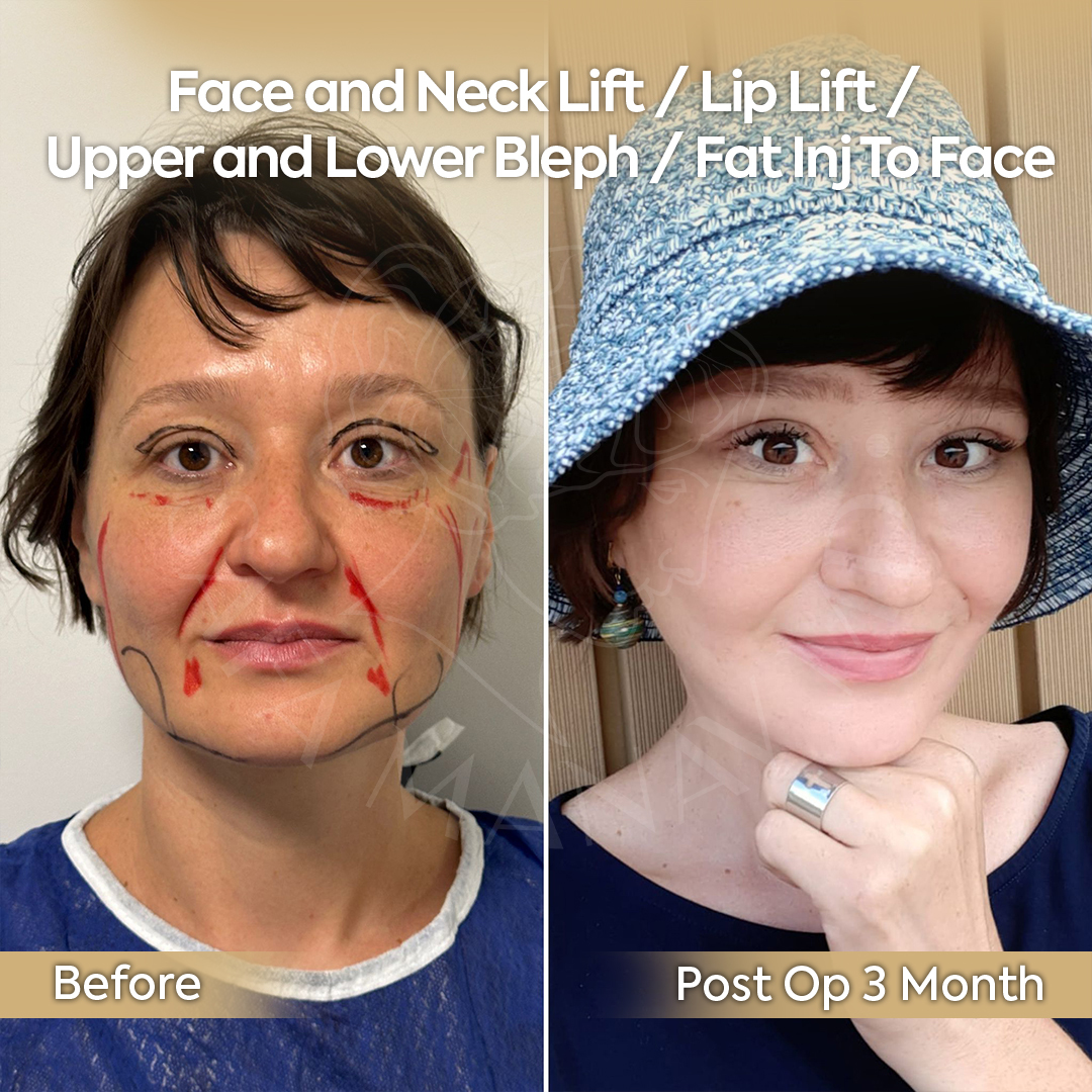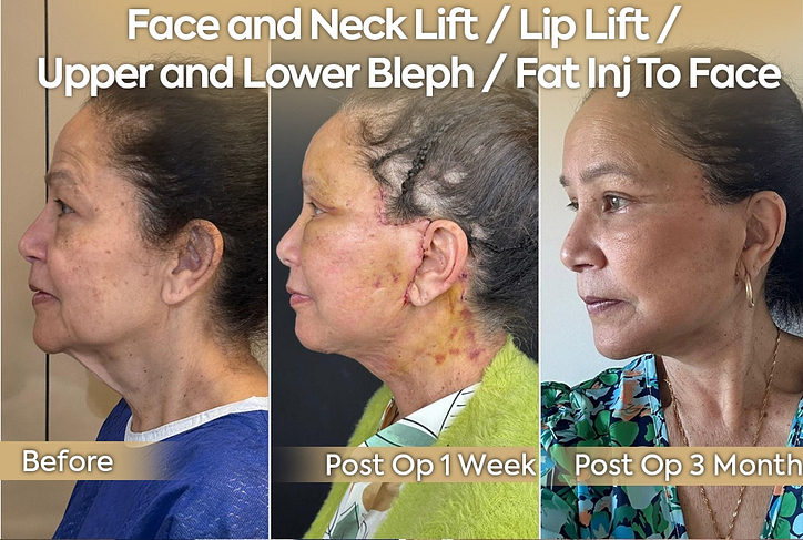 The healing process varies from patient to patient, and we strive to be transparent about what to expect. Below, you can see the healing timelines of two patients following a facelift operation. Please note that the healing period depends on factors such as the type of procedure, the patient’s age, and individual characteristics.